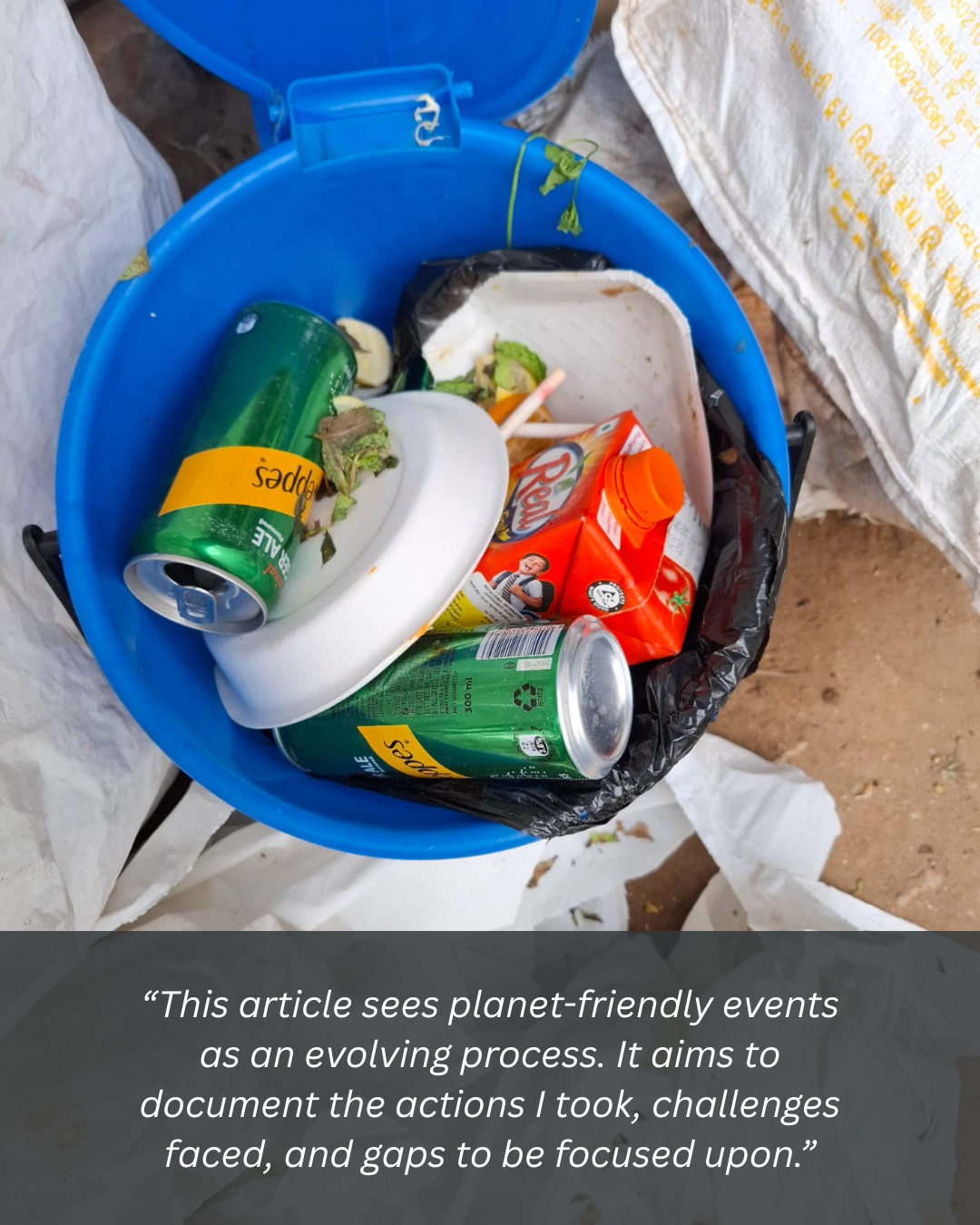 This article sees planet-friendly events as an evolving process. It aims to document the actions I took, challenges faced, and gaps to be focused upon.