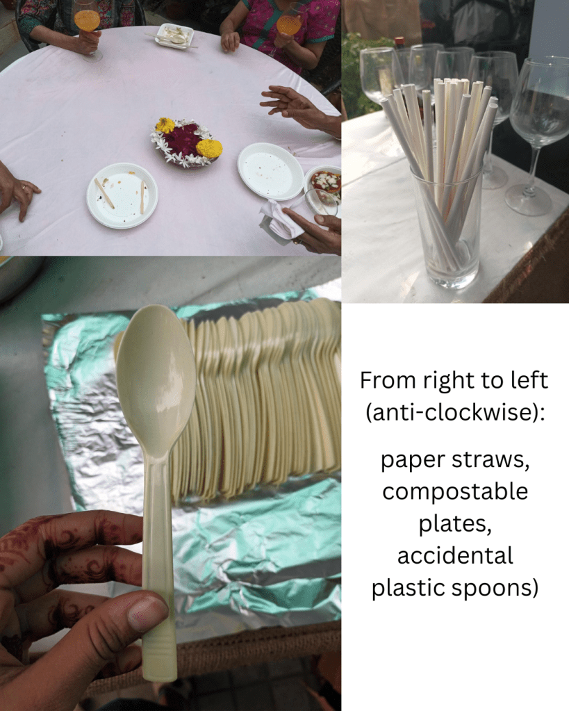 - Using compostable cutlery (the packaging said it was compostable, we’ve put the cutlery in our compost bins and will get to know for sure in a few weeks)