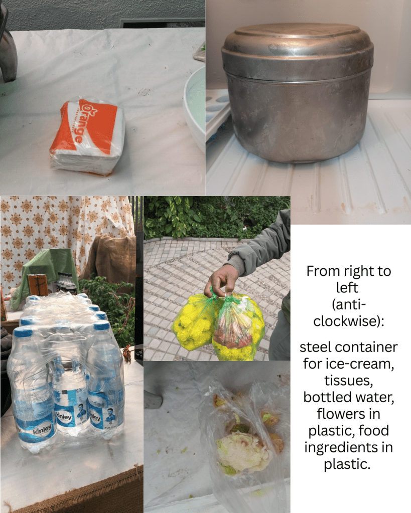 - The caterers accidently brought a packet of plastic spoons too (which we did not use but the plastic packaging was opened).